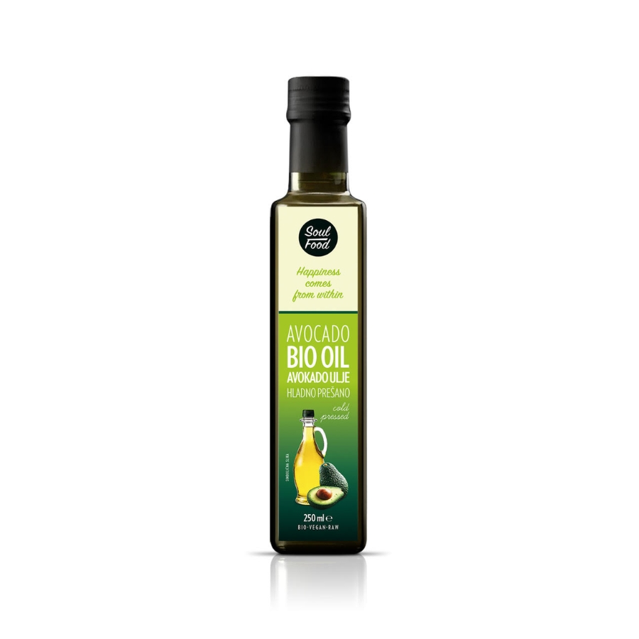 Soul Food avokadovo ulje se proizvodi od organski uzgojenog avokada. Nježan i voćni okus ulja avokada je pogodan za veliki izbor svakodnevnih jela uključujići pržene krumpiriće i preljeve za salate.