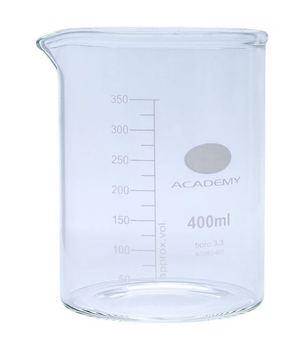 Laboratorijska čaša, staklena, graduirana, niska.