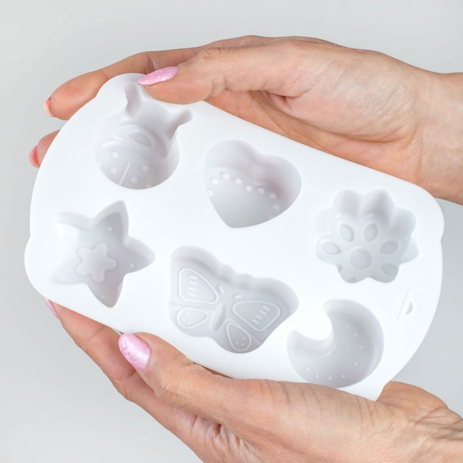 Silikonski kalup za izradu sapuna iz glicerinskih i melt&pour baza. Kalup se može koristiti i za izradu svijeća, krutih šampona, šumećih kugli za kupanje, pločica za masažu i sl.