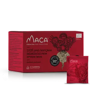 CRVENA MACA jedna je od tri vrste peruanske mace koja ima najviše antioksidativne i nutritivne vrijednosti. 100% prirodna bez ikakvih primjesa i dodataka. Ima veću koncentraciju macamida od crne mace.