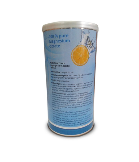 Magnezij je esencijalni mineral koji je dio enzimatskih sustava cjelokupnog organizma. Sudjeluje u metabolizmu energije, kontrakciji mišića, prijenosu živčanog sustava i regulaciji hormonske ravnoteže. Magnezij citrat je dodatak prehrani u prahu.